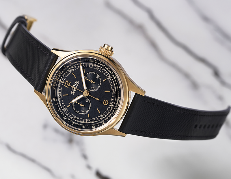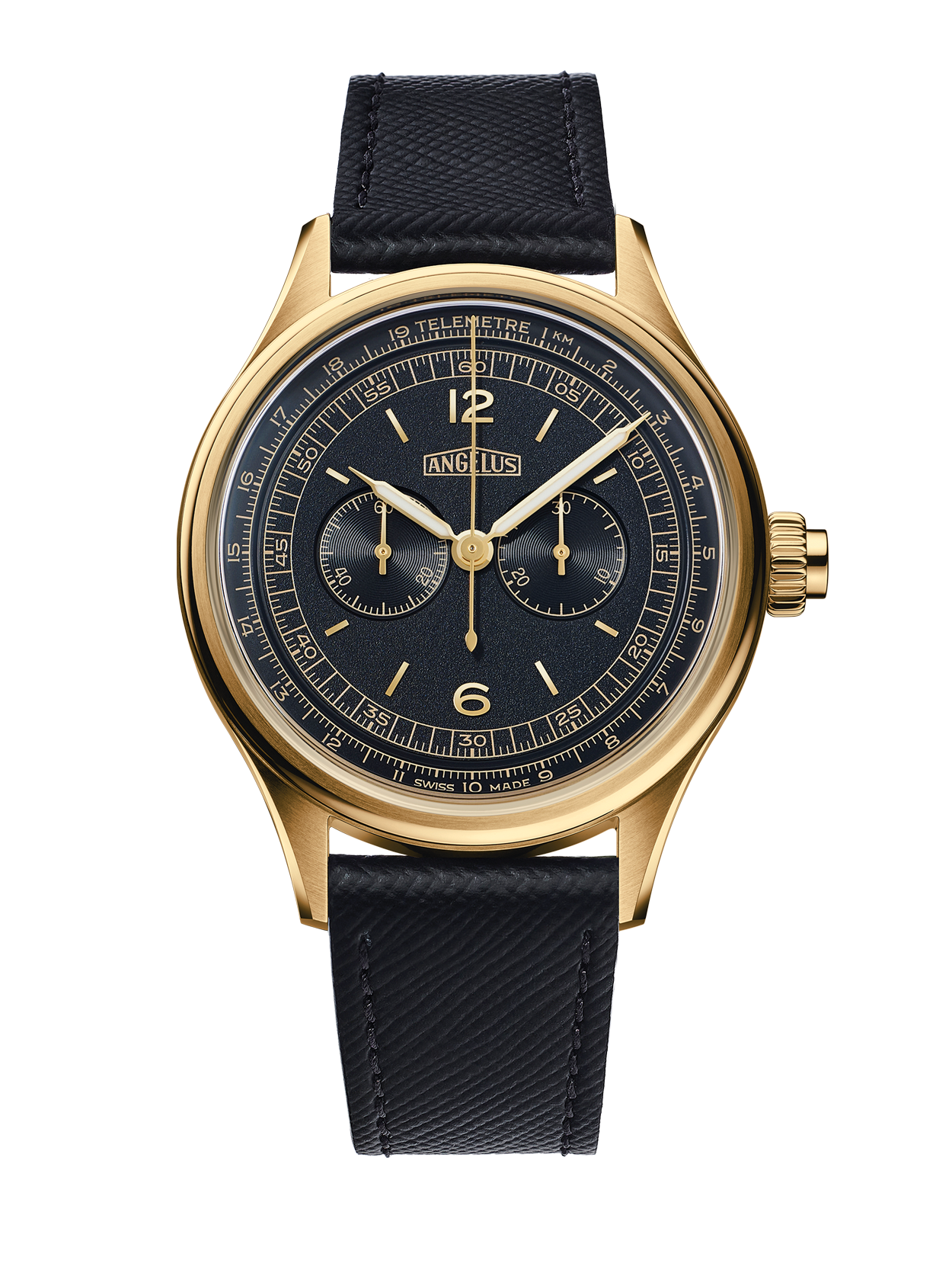 The Maison Angelus, founded in 1891 by the Stolz brothers, is proud to announce the Chronographe Télémètre in collaboration with Massena LAB. Fitted in an 18k gold case, this timeless design is offered as a limited edition of only 10 pieces. Measuring 37 millimeters in diameter and equipped with a manual-winding caliber, the timepiece is operated by a single pusher subtly set into its crown. Adorned with a black dial – a rare aesthetic in the Maison’s catalogue – the Chronographe Télémètre will appeal to enthusiasts and collectors of exceptional watches with an elegant design and vintage touches.